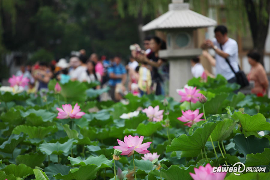 曲江池荷花争相开放 端庄美丽引游人