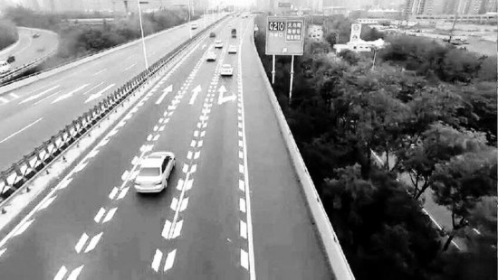 高速路上的行车道减速标线本报记者陈飞波摄