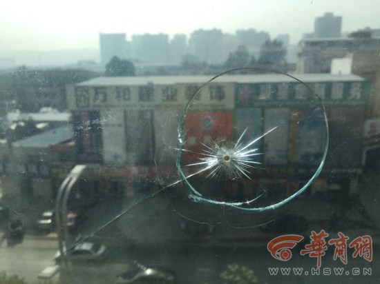 在6楼的李先生家,家中阳台上的玻璃损坏更大,有几处都被钢珠打出一个大洞。“不知道是谁干的,都不敢去阳台了。”李先生说,他家阳台玻璃上至少有七八个洞。