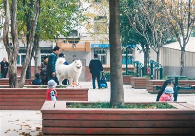 11月7日下午,记者分别来到这两个小区进行走访。在凤栖西路宁东林业局家属院看到,下午六点多的小区小广场上,不少居民在健身锻炼,还有不少居民带着小孩子活动。突然有一只白色的大型犬窜入人群四处乱窜,一时间不少居民吓得纷纷抱起孩子躲避。另外小广场地上,不时能看到狗的粪便。