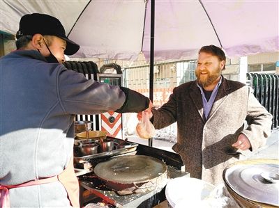 每天上午,只要有时间,他都会准时来到西安外国语大学雁塔校区北门外,买一份煎饼果子当早餐。煎饼摊的张老板和他是“老熟人”了。“我的中文全是在饭馆点餐时练习出来的,比如‘泡馍’‘biangbiang面’‘肉夹馍’,全是我的最爱。”约翰开玩笑地说,西安人的学习热情很高,知道他来自美国后,通常会跟他练习英语口语,没人找他聊中文。因此,他的中文水平至今也没能提高多少。“我的父母、朋友来西安时,我可是他们的美食导游。哪家羊肉泡馍好吃,我都清楚。”约翰笑称自己已经养成了“陕西胃”,特别爱吃西安的各类美食。