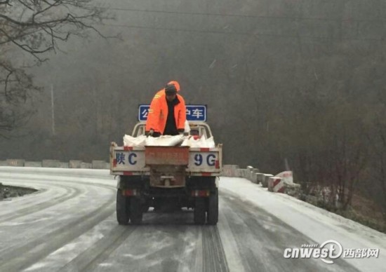 宝鸡降雪,212省道对四轴以上货车实行交通管制。