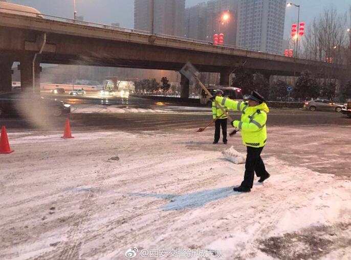 新城辖区:二环辅道有结冰情况,韩森路路面,小东门盘道有积雪,咸宁路,华清路路面有结冰情况,都已经通知市政清理撒盐。【积雪、结冰5处】
