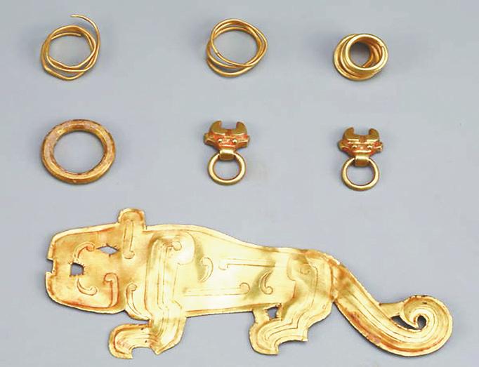 一是钻探确认了墓地的范围与墓葬数量,了解了墓葬形制与墓地布局特点。墓地总面积约7700平方米,共发现墓葬56座,车马坑2座,马坑1座。特别引人注目的是两座“中”字形大墓(编号M1与M2),东西并列分布,居于墓地中部偏东处。二是对墓地进行全面发掘,2017年共发掘墓葬20座,出土了铜、金、铁、石、玉等材质的器物。墓葬多使用木质棺椁葬具,墓主人头向多朝北,仰身直肢。根据墓葬及随葬品特征判断,其年代为春秋早期或略偏晚阶段。三是通过周边区域系统调查,找到了与墓地年代相匹配的两处居址遗存,包括有陶窑、灰坑、板瓦堆积及陶器残片,以及一处由夯土和壕沟组合成的面积10余万平方米的核心区域。根据采集陶器与板瓦的特征判断,两处居址的年代为春秋早中期前后。