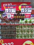 昨日下午,根据曹先生提供的信息,华商报记者前往东仪路与丈八东路十字东南角的人人乐南郊购物广场。从二楼入口进入后,就能看到空中挂着“均价特卖”的宣传海报。在曹先生购买醋的摊位,空中悬挂着“均价特卖5元”海报,下面堆放着多桶醋和粉丝等商品。记者查看货堆四周,只看到粉丝有专门价签为5元每袋。