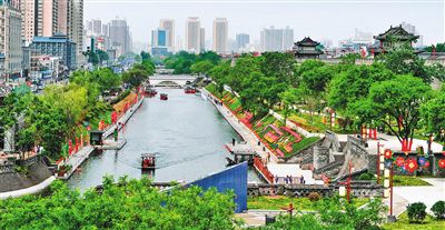 2017年12月,朱雀门至西门综合改造工程已正式完工。通过河道综合改造、水资源全面利用、河道水体循环系统及水质处理系统安装等工程,采用了接触氧化、底泥消解、生态修复等工艺,大幅延长了再生水使用周期,新增景观水面面积6.5万m2,新增护城河护坡绿化面积7万㎡,有效地节约了水资源,改善了护城河水质。