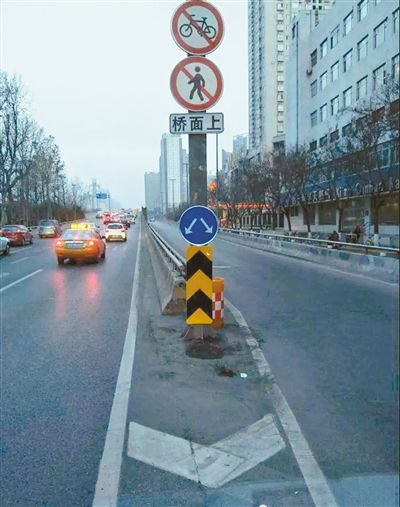 南二环太白立交东侧上桥口增设道路线形变化提示标志 (西安交警供图)