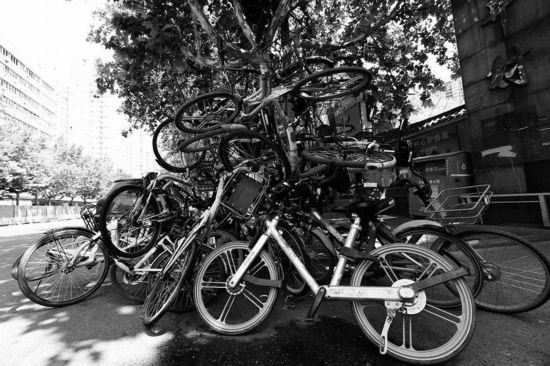 如果说酷骑单车成废弃垃圾,“横尸”街头无人问津,可有的正常运营的单车企业似乎对车辆的维护也不是很及时。6日14:40,记者来到西安沙井村,只见路口处堆放了大量的单车,可以用“堆积如山”来形容。其中,摩拜车8辆、小黄车十多辆、享骑电单车1辆,其中还有几辆车子“缺胳膊少腿”。