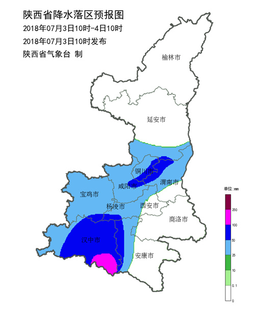 预计7月3日白天到晚上汉中地区、安康西部、关中北部仍将出现50毫米以上的降水,汉中南部局地可达100毫米以上。