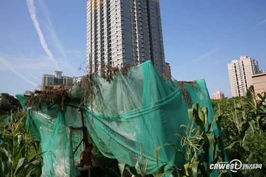 西安城墙东南角有个叫乐居场的地方,这里可是城市的中心地带,在这高楼林立的地方有片空闲地,附近的退休老人在这里种菜。一名70多岁的老人一大早就来菜地劳动,热了就在自己搭的窝棚里休息一会儿。NAf安康新闻网