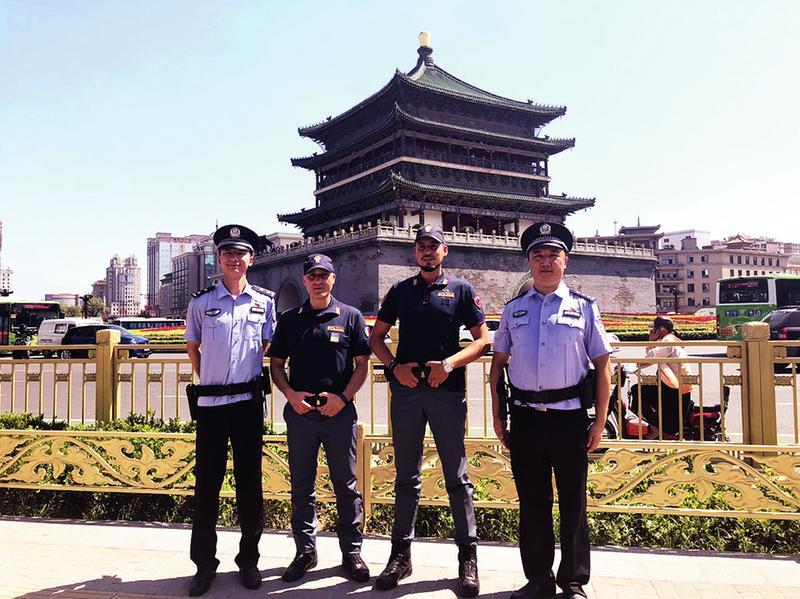 西安市公安局特意挑选了两名外语能力强、警务素养高、形象作风好的基层民警,参与此次联合巡逻。记者 宋雨 实习生 程子朔