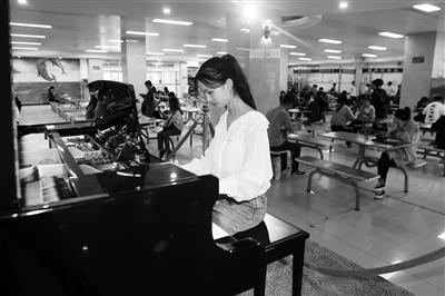 大学食堂里一架钢琴的亮相,平添了几分文艺范。学生小张说,听着钢琴曲吃饭,愣是把一碗油泼面吃出西餐的感觉来。