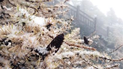 昨日15时,太白山天圆地方景点地面上的积雪已达3—4厘米。 贾新辉 记者 代泽均 摄