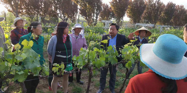 通过在荣华葡萄基地跟着园区聘请的葡萄种植教授、专家学习,西安市鄠邑区的向养谊成长为新型职业农民、高级农艺师。2018年,他被聘为西安市农业科技特派员。