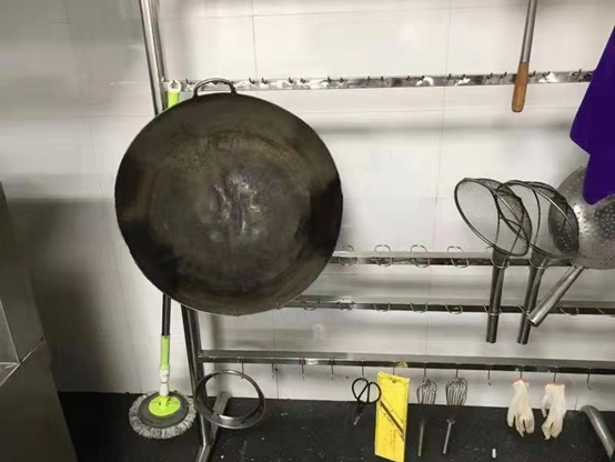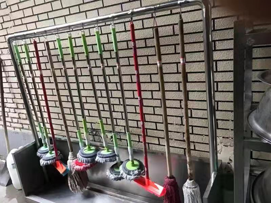 清洗烟罩专用拖把,有明确标识,统一悬挂在操作间室外东南角