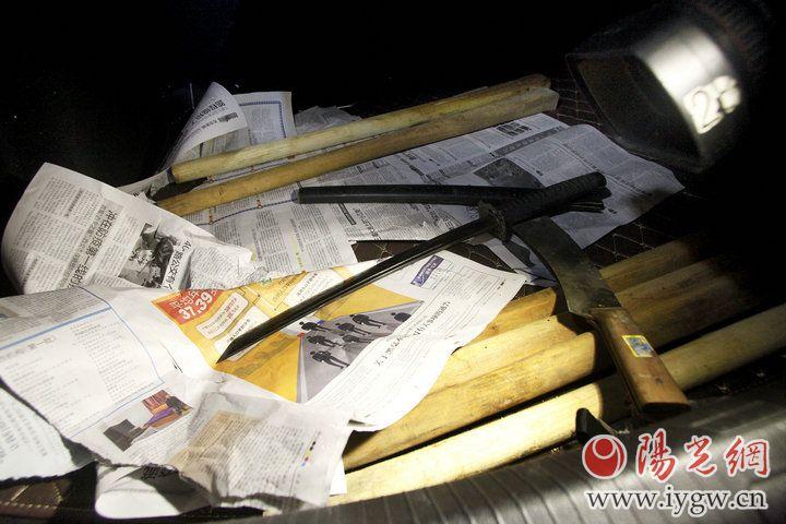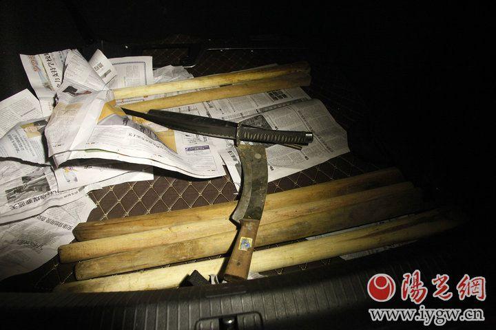 一辆无牌车后备箱藏有管制刀具。