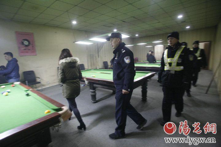 民警在一家台球厅进行检查。