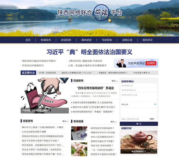 10月25日全新改版升级的陕西省网络举报中心官网“陕西互联网违法和不良信息举报中心”网站(www.sxjubao.cn)和陕西网络辟谣联盟官网“陕西网络联合辟谣平台”网站(http://www.sxjubao.cn/piyao.htm)同步上线。