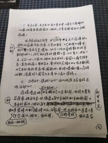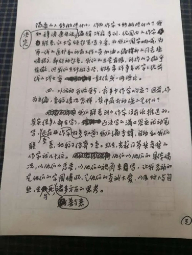 贾平凹一直保留着手写文稿的习惯,图为他接受《新华每日电讯》草地副刊采访时,回复记者的手稿。