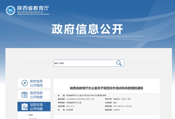 8月4日,陕西省教育厅办公室发布关于规范校外培训机构管理的通知,要求校外培训机构立即停止义务段暑期学科培训,严禁培训机构以学前班、幼小衔接班、思维训练班、素质拓展等名义面向学龄前儿童开展线下学科类(含英语)培训。