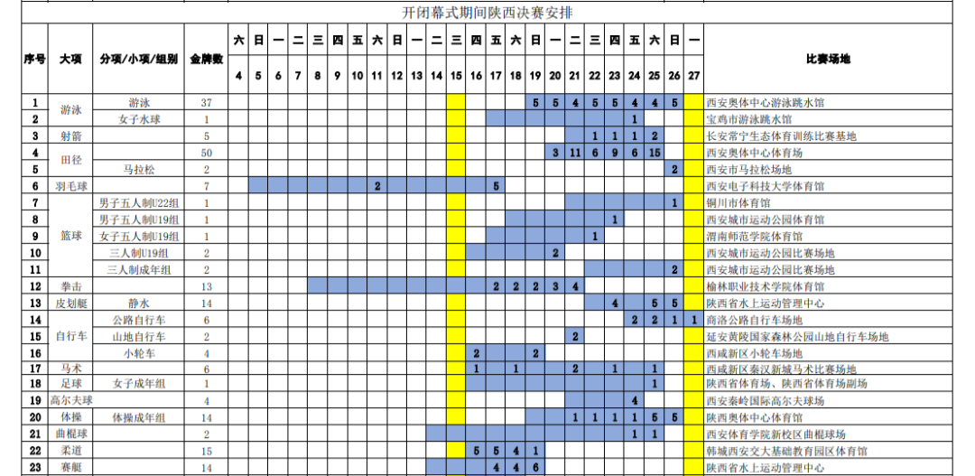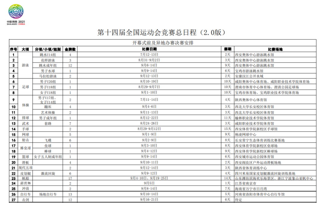 8月3日,国家体育总局办公厅公布了第十四届全国运动会竞赛总日程(2.0版)。根据东京奥运会赛程,以及疫情防控工作需要,国家体育总局调整了部分项目的竞赛日程。vTn安康新闻网 vTn安康新闻网 vTn安康新闻网 vTn安康新闻网 vTn安康新闻网