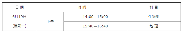 笔试科目为生物学和地理,两科满分值各60分,考试时长各60分钟。实验操作考试科目为信息技术上机操作和生物学实验操作,两科满分值各10分,考试时长各15分钟,考试具体办法按照省教育厅相关文件的要求执行。