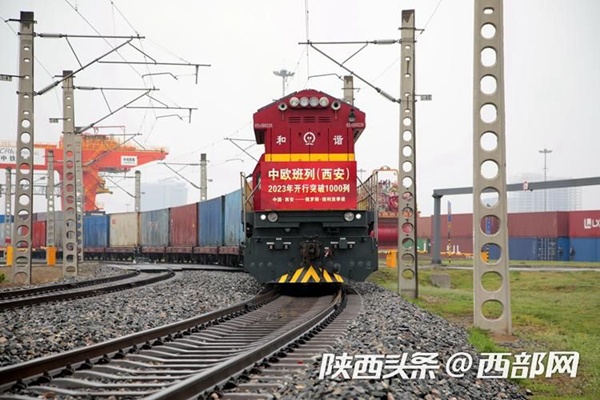 3月23日上午9时,伴随着机车的汽笛声,满载50辆外贸出口汽车的X8489次中欧班列从西安国际港站缓缓驶出,一路向西开往俄罗斯谢利亚季诺。西部网·陕西头条记者获悉,今年以来,中欧班列(西安)开行量突破1000列,开行量、货运量、重箱率等核心指标稳居全国第一。