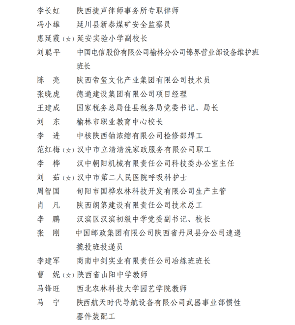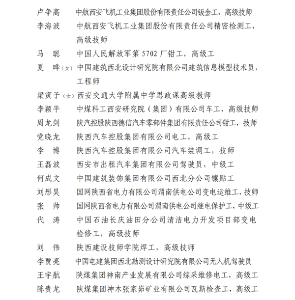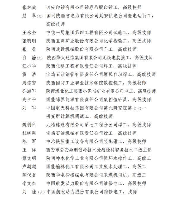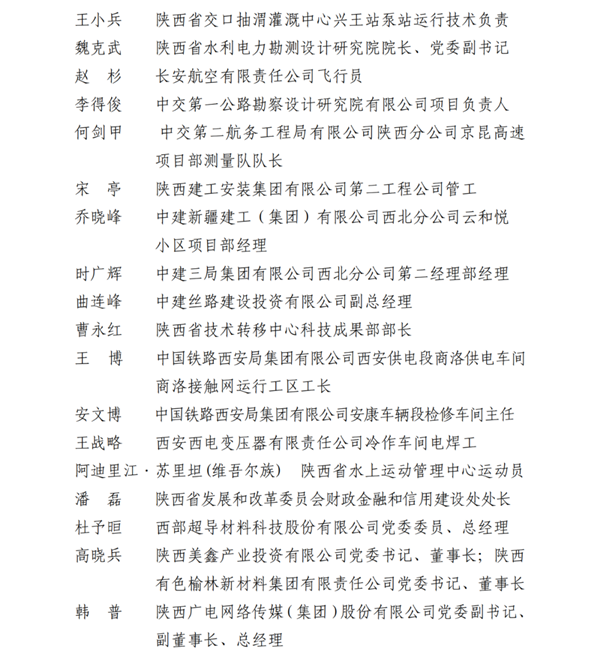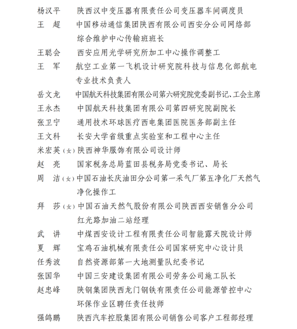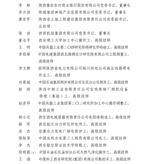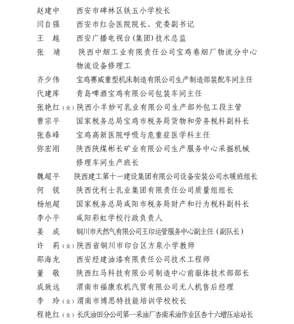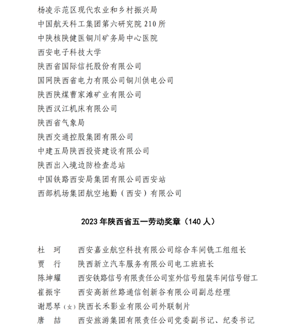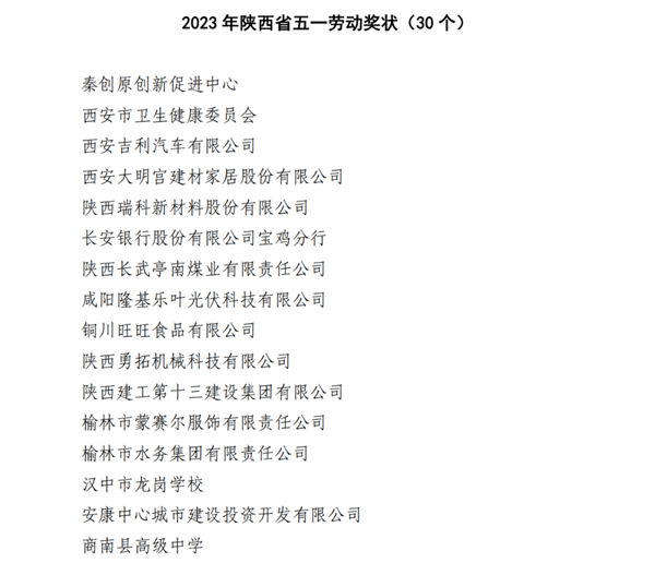 2023年陕西省五一劳动奖名单