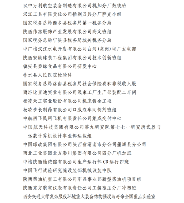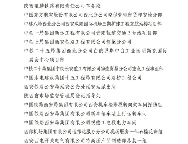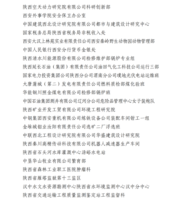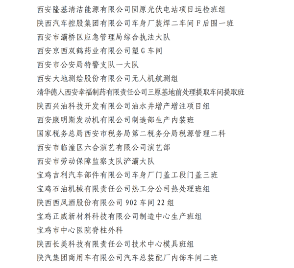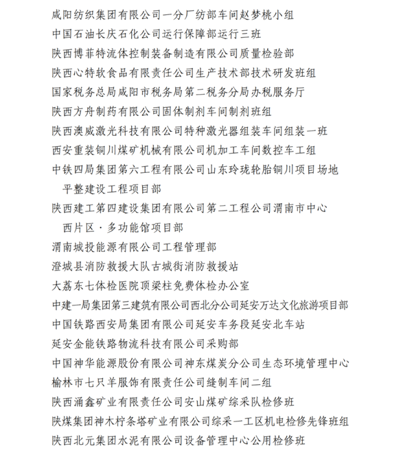 2023年陕西省工人先锋号名单