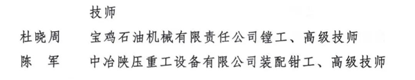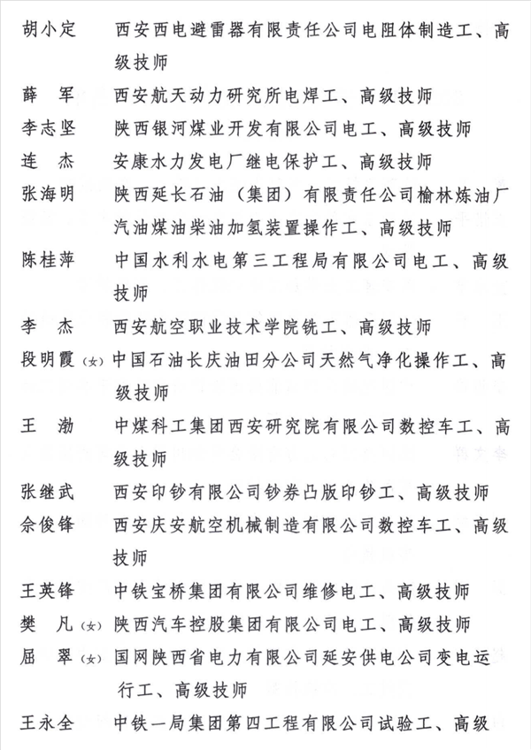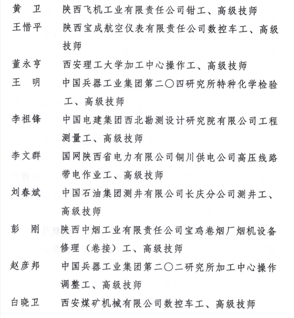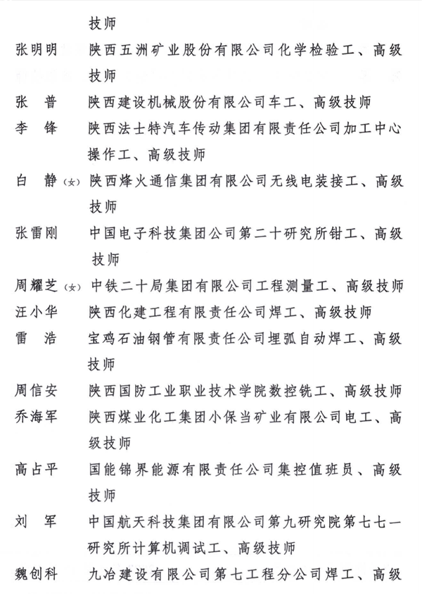 2022年“三秦工匠”称号获得者名单