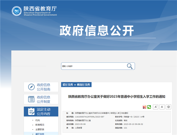 5月10日,陕西省教育厅发布关于做好2023年普通中小学招生入学工作的通知,具体内容如下: