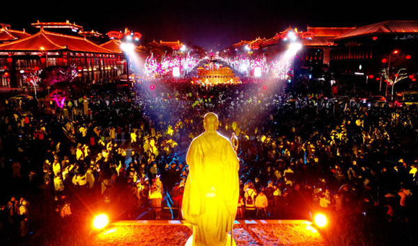 大唐不夜城位于西安大雁塔脚下,南北总长2100米,东西宽500米。在唐代,这里曾是大唐高僧玄奘的译经之处,众多文人骚客也曾在这里赋诗抒怀,新科进士更把“雁塔题名”视为莫大荣耀。