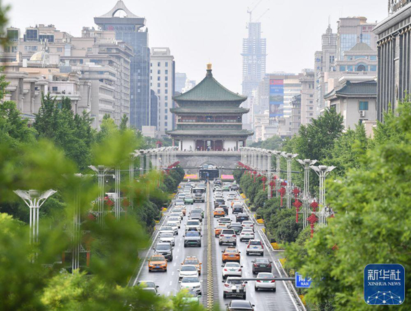 ↑这是5月15日拍摄的西安钟楼。新华社记者 张博文 摄