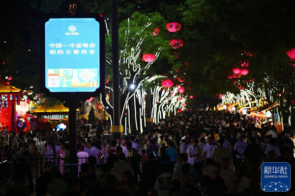 ↑5月15日,游客在西安大唐不夜城游览。新华社记者 宋为伟 摄