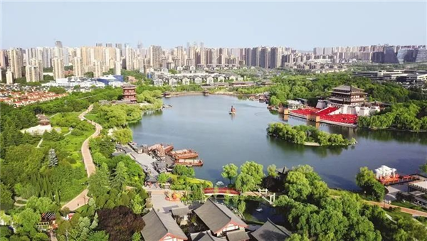 西安大唐芙蓉园(4月25日摄,无人机照片)。新华社记者 刘潇摄