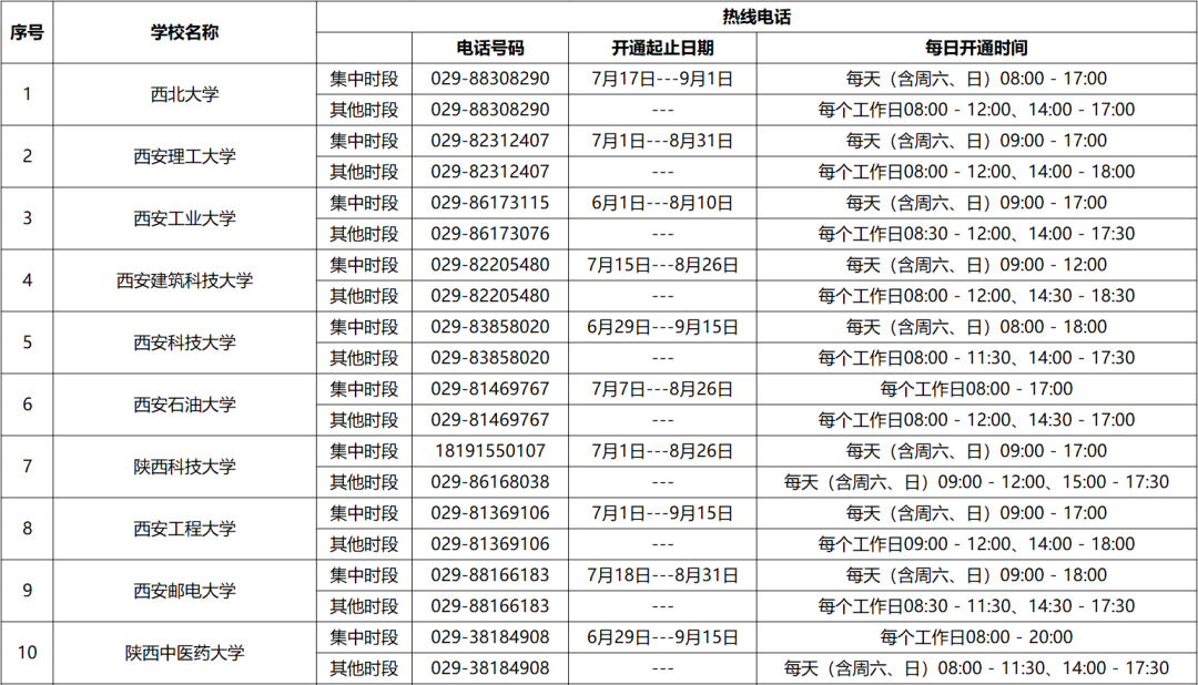 为帮助广大学生和家长及时准确了解国家资助政策,申请获得相应资助,陕西省地方高校本专科学段每年暑期均开通热线电话。