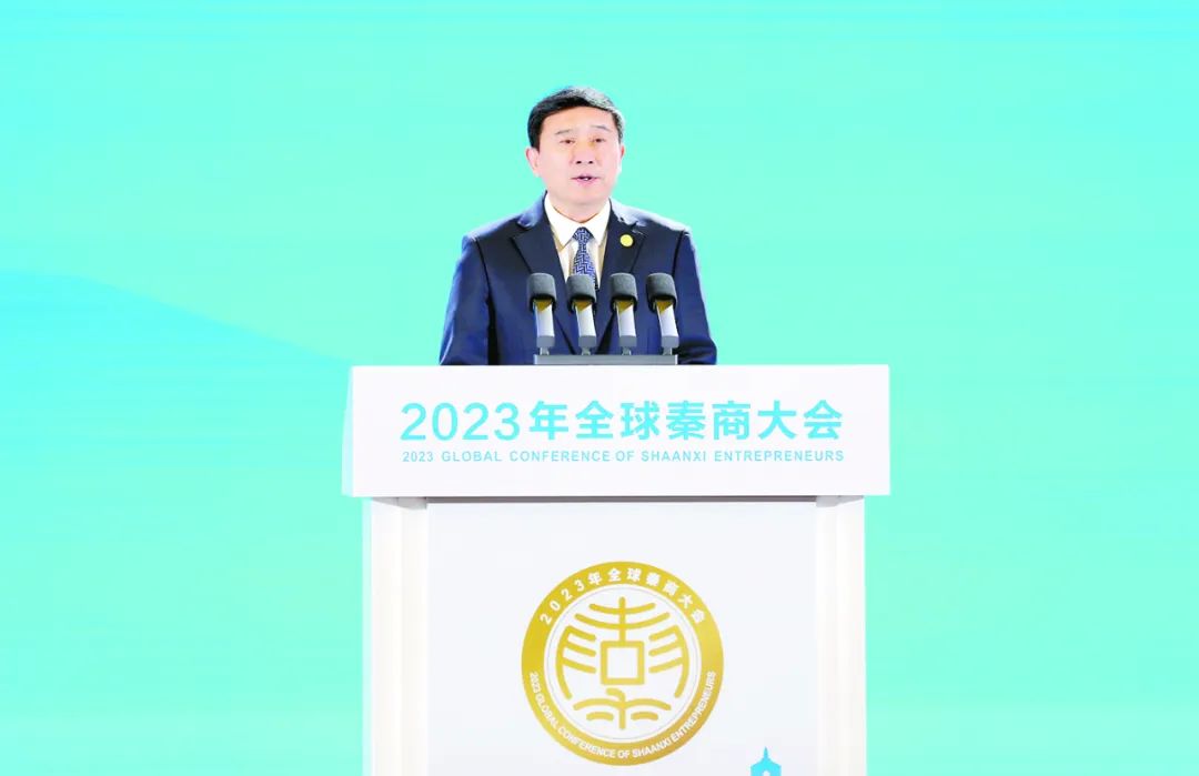 陕煤集团党委书记、董事长张文琪在2023年全球秦商大会开幕式上发言。