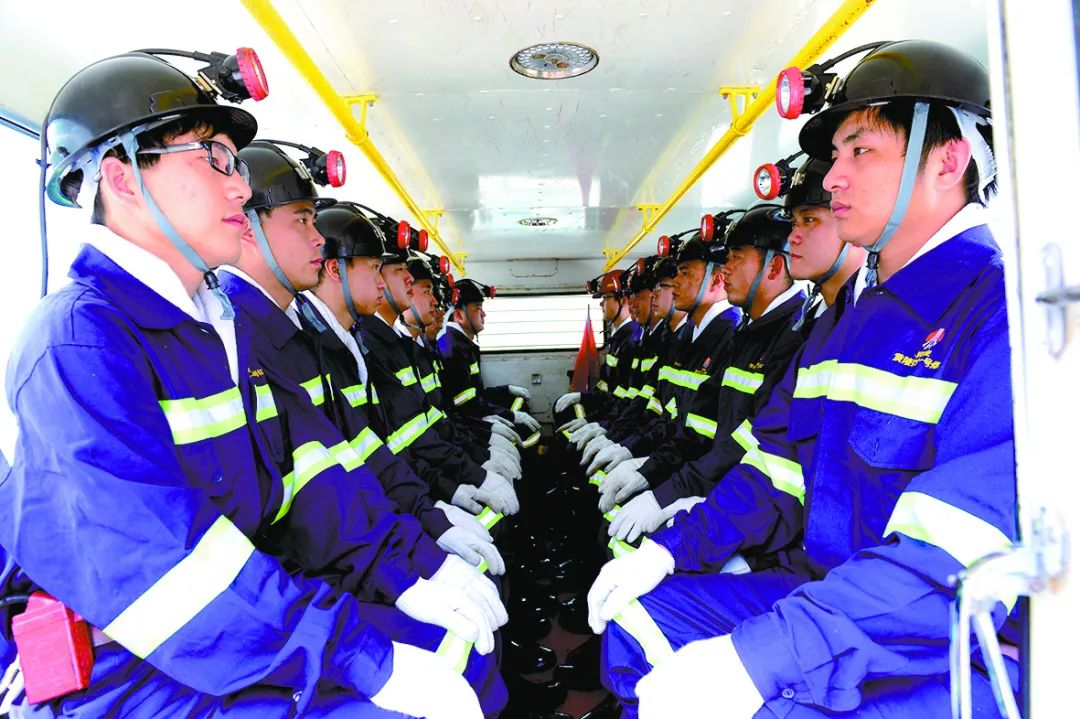 煤矿一线职工乘车入井作业。