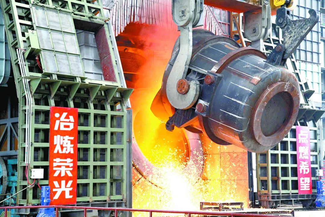 陕钢集团汉钢公司炼钢厂转炉车间生产现场。