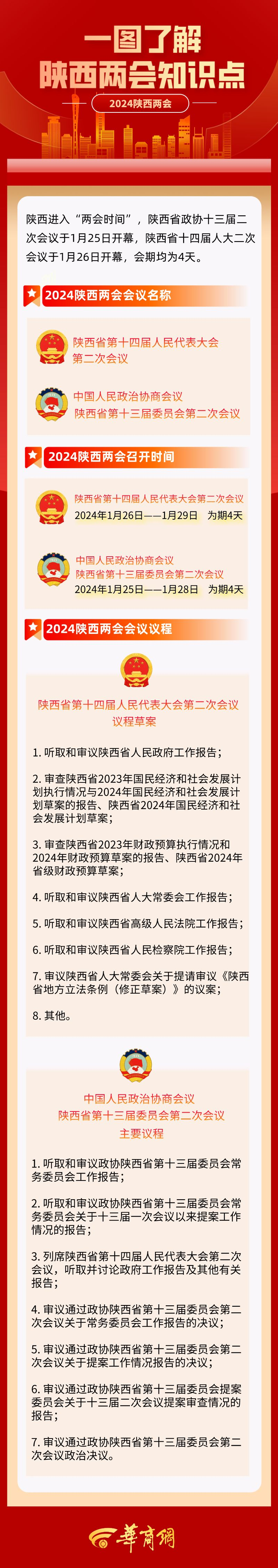 陕西进入“两会时间”。陕西省政协十三届二次会议于1月25日开幕,陕西省十四届人大二次会议于1月26日开幕,会期均为4天。关于2024陕西两会,哪些知识点要知道,来一图了解↓ jLB安康新闻网