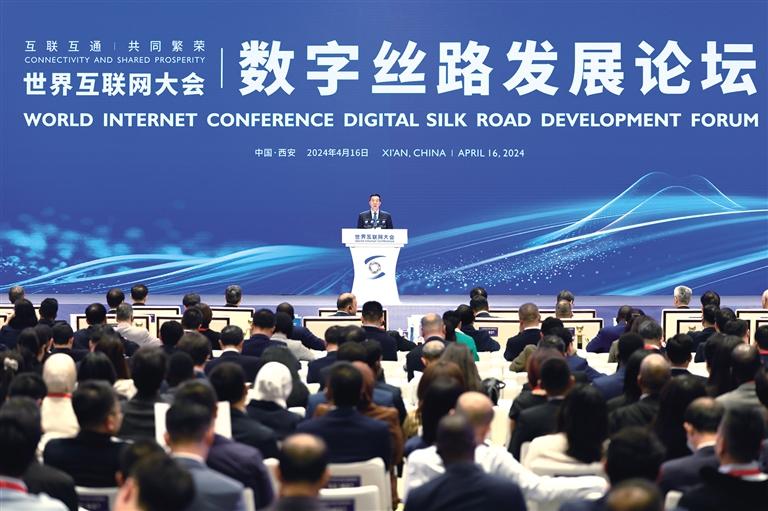 四月十六日,以“互联互通 共同繁荣”为主题的世界互联网大会数字丝路发展论坛在西安举行。陕西日报记者 母家亮摄