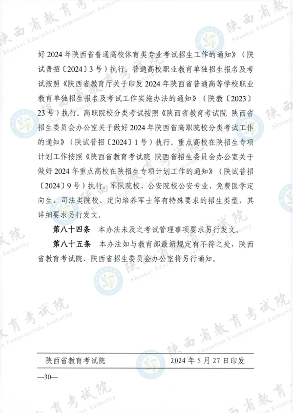 陕西省教育考试院、陕西省招生委员会办公室印发了《2024年陕西省普通高等学校招生工作实施办法》,明确了我省2024年高考各项政策。明日起,2024年陕西省高考宣传季活动正式开始。jpY安康新闻网