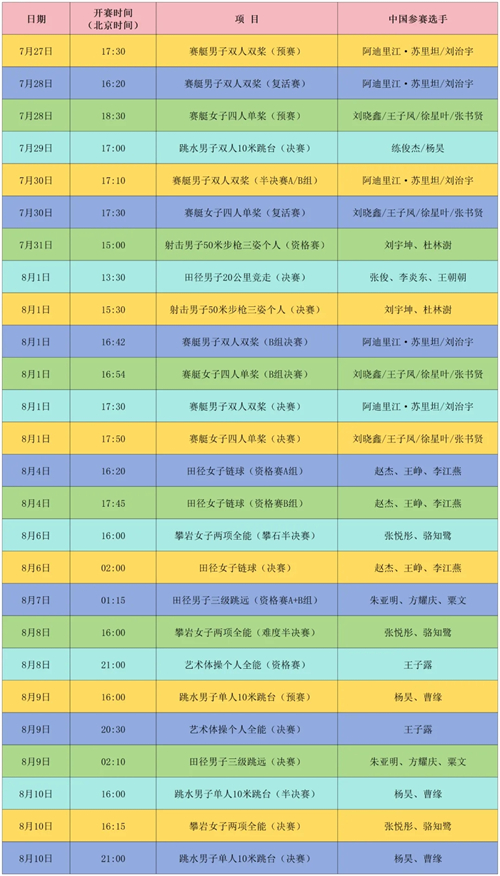 目前,十名运动员的赛程已确定,具体如下↓↓↓