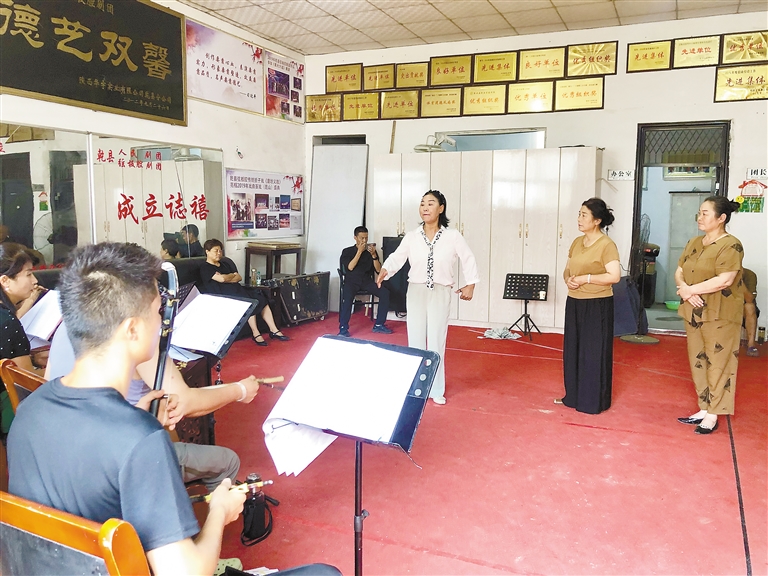 7月28日,乾县弦板腔剧团的演员们在排练。 记者 张乐佳摄