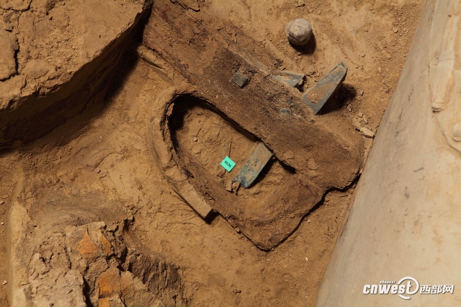 秦俑考古首现完整弓弩 弓弦清晰可见