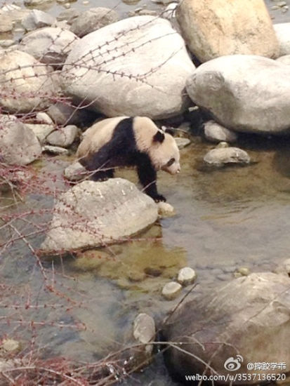 大熊猫受到惊吓徘徊在河边。(图片来源于网络)