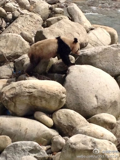 大熊猫受到惊吓徘徊在河边。(图片来源于网络)