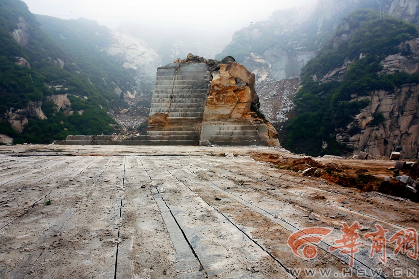 在华阴市大敷峪内一个山头已经被削平。留下光秃秃的平面。 记者 邓小卫 文/图