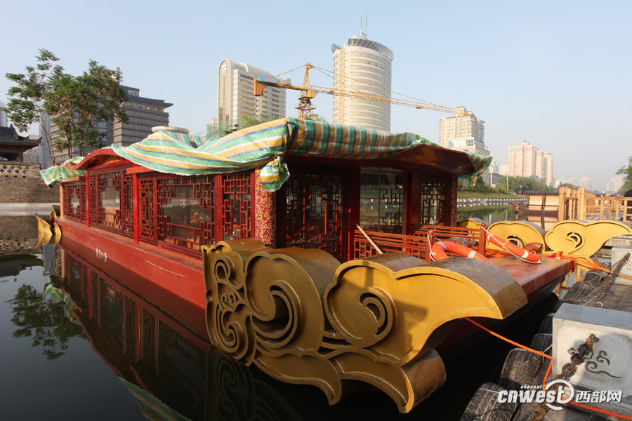据了解,另外9艘游船最近也将从江苏运达西安,这些仿古船是电瓶船,没有污染。建国门到朱雀门段护城河示范段5月1日对外开放后,将有16艘不同主题的游船供游人乘坐,游客可在护城河内泛舟游览。