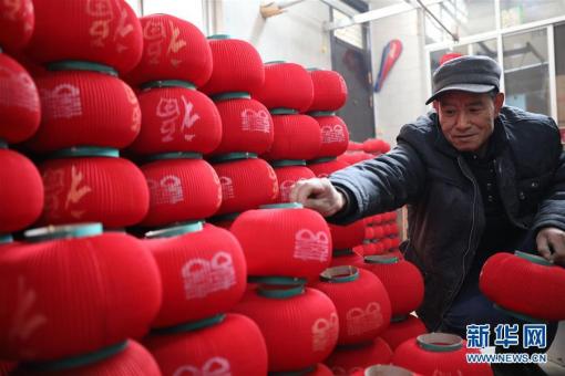1月9日,66岁的陕西省凤翔县彪角镇三岔村村民刘西德摆放做好的灯笼。 春节临近,人们忙着制作节庆用品、手工艺品等,喜迎新春佳节。 新华社记者 都红刚 摄……